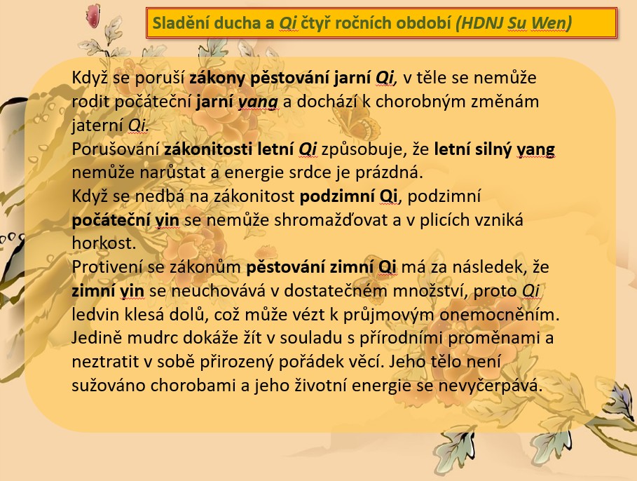 "Jedině mudrc dokáže žít v souladu s přírodními proměnami a neztratit v sobě přirozený pořádek věcí. Jeho tělo není sužováno chorobami a jeho životní energie se nevyčerpává."